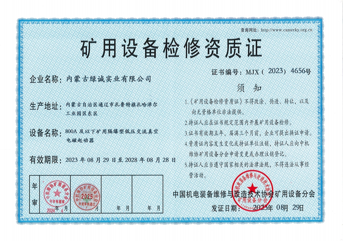 2018年我公司通過中國機電裝備維修與改造技術協會礦用設備分會審核并取得了9項礦用設備檢修資質證書。公司本著“誠信為本 質量為先 全心全意為客戶 ”的服務理念,圓滿完成各個廠礦的機械維修及配套服務,期待與您共同合作。